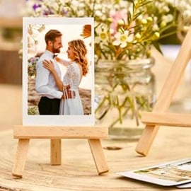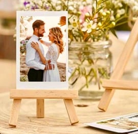 Além do livro de recordações, as polaroides podem ser usadas para compor a decoração e como uma lebrancinha única para cada convidado, podendo ser acompanhada de molduras artesanais , postais personalizados ou uma linda caixinha