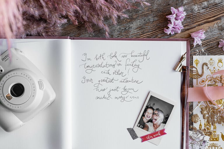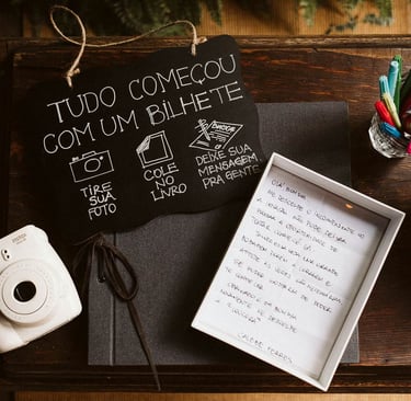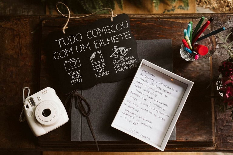 “Registre seu evento de forma única e cheia de significado! Com o guest book polaroide, unimos fotos instantâneas e mensagens personalizadas para criar um livro de memórias exclusivo e inesquecível. Perfeito para casamentos, aniversários e celebrações especiais!”